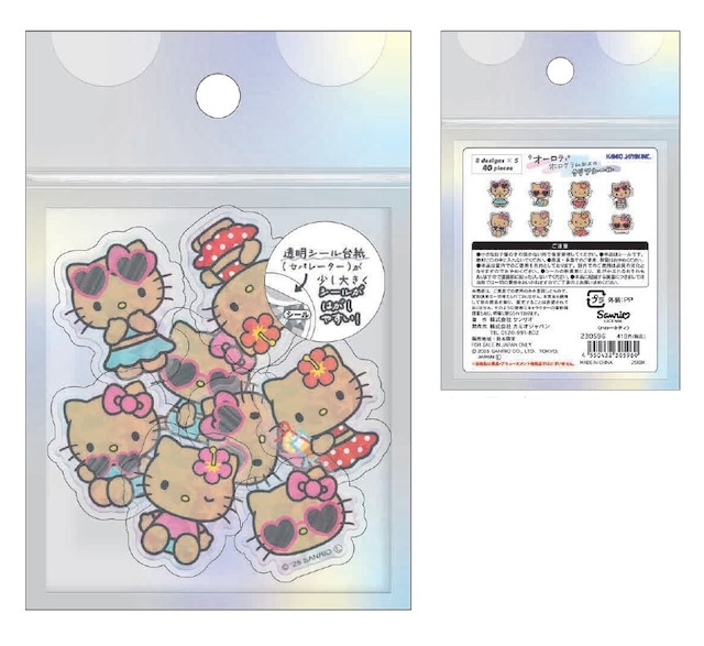 ハローキティ オーロラホログラムクリアフレークシール kmo_230596 Flake seal 日焼け クリアシール ホログラムシール KAMIOJAPAN カミオジャパン かわいいシール おすすめシール