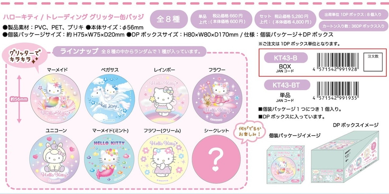 ハローキティ トレーディング グリッター缶バッジ nic_kt43bt mikko illustrationsグッズ バッジ ティーシーピー mikko illustrations TCP 缶バッジ トレーディングタイプ