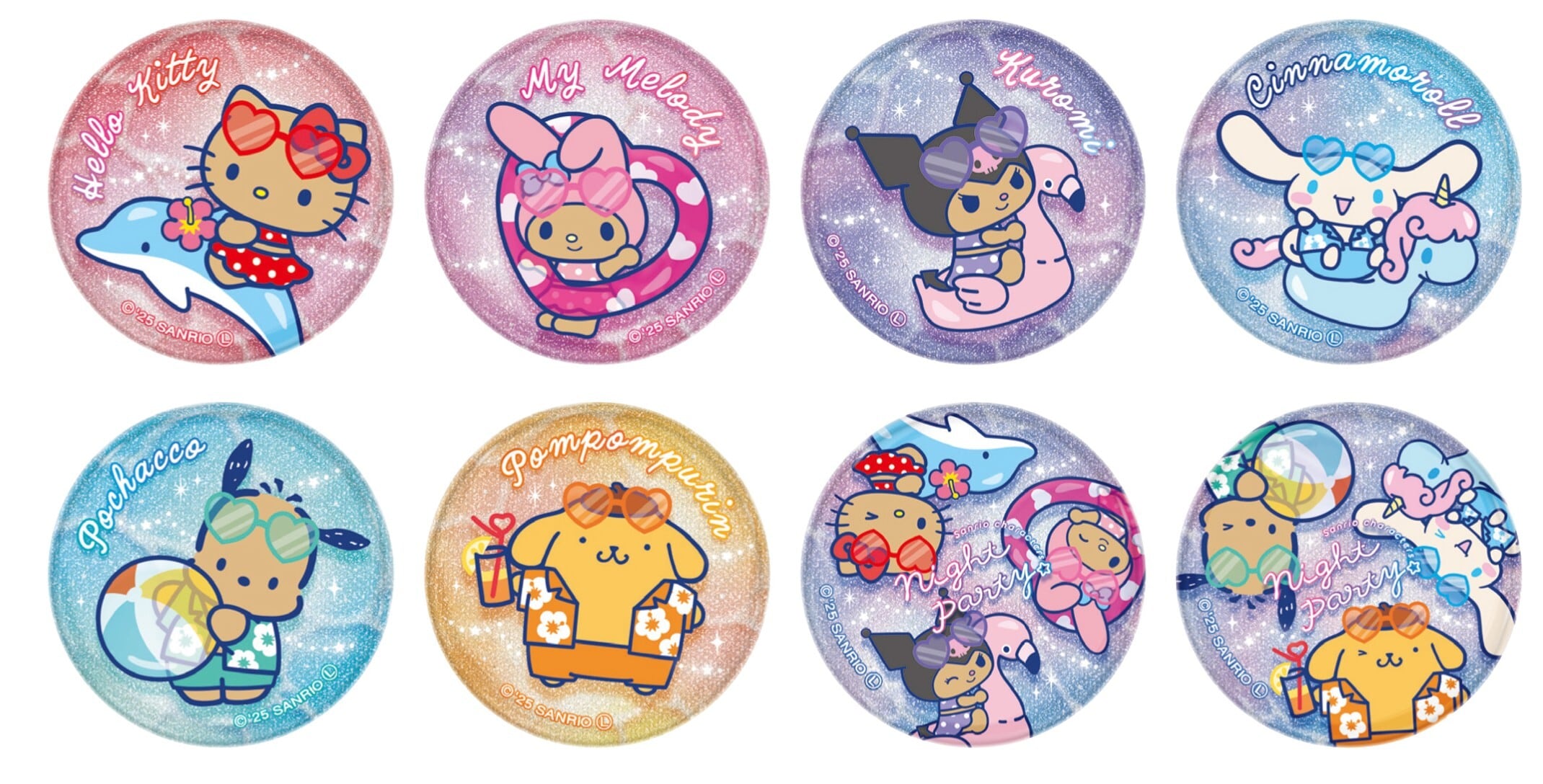 予約 2025年6月下旬入荷 トレーディンググリッター缶バッジ 306489_単品ランダム サンリオキャラクターズ グッズ チャーム 缶バッジ ティーシーピー カミオジャパン トレーディングタイプ 日焼けキティ night party サインリオキャラクターズ日焼けシリーズ