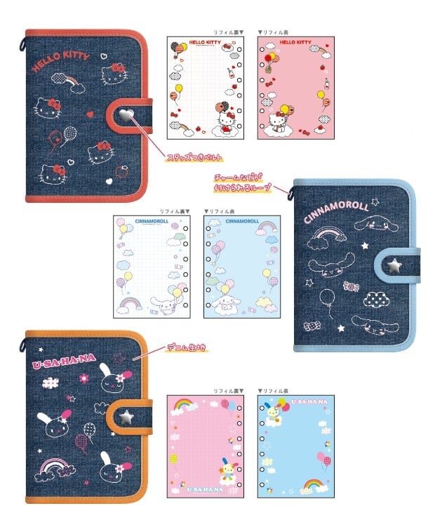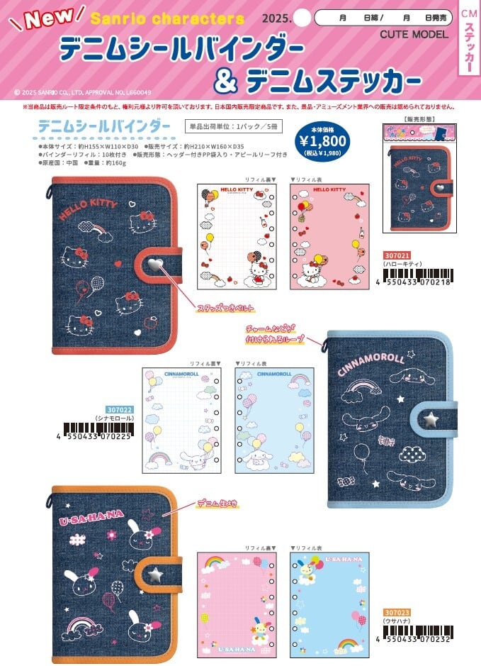 2026年 2月下旬 サンリオキャラクターズ デニムシールバインダー kmo_307021_307023 seal binder カミオジャパン バインダーリフィル かわいいシールバインダー おすすめシールバインダー シール帳