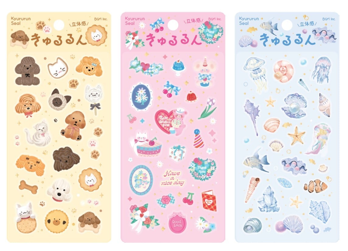 シール きゅるるんシール bgm_bs-pr004_006 BGM Flake Seal 立体シール シートシール Kyururun Seal ビージーエム おすすめシール かわいいデコレーションシール