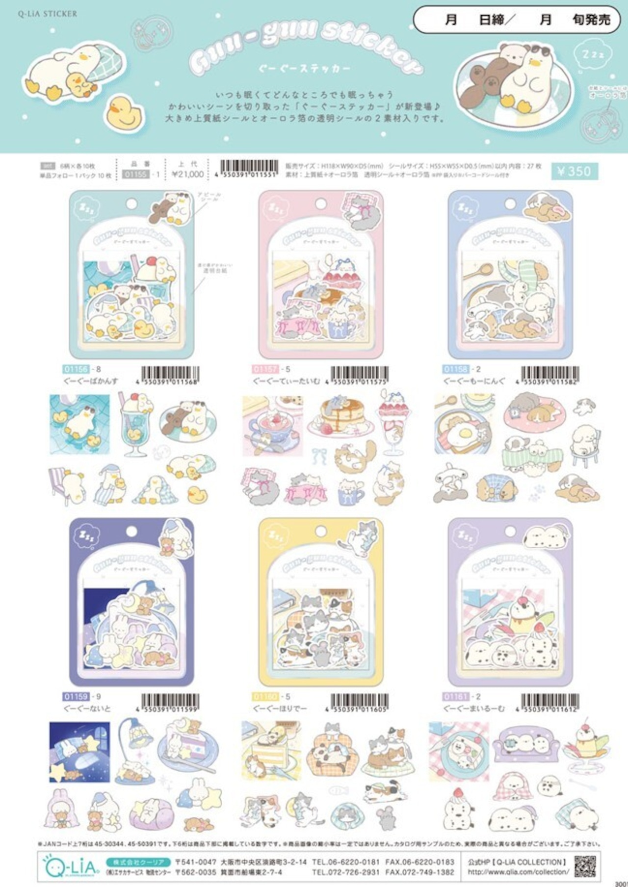 ステッカー ぐーぐーステッカー qli_01156_01161 guu-guu sticker seal クーリア qlia フレークシール かわいいシール おすすめシール