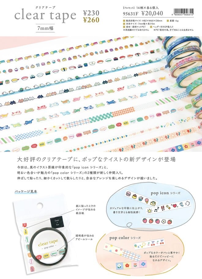 クリアテープ pop iconシリーズ miw_95632_95638 clear tape 7mm幅 マインドウェイブ 透明テープ mindwave かわいいテープ おすすめテープ