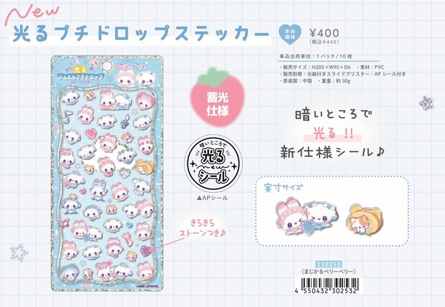 まじかるベリーベリー 光るプチドロップステッカー kmo_230253 ジュエルプチドロップ シール ステッカー seal sticker カミオジャパン 光るシール かわいいシール おすすめシール デコレーションシール
