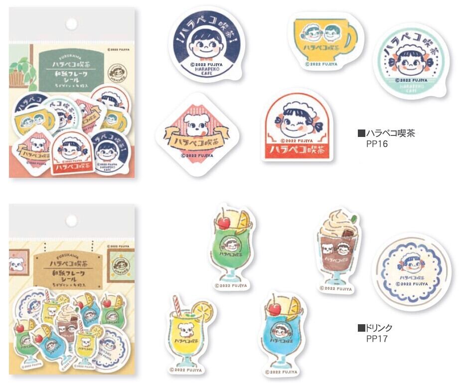 フレークシール ハラペコ喫茶 和紙フレーク 全4柄セット fru_pp16_pp19 古川紙工 seal sticker 5柄4枚 計20枚入 75×80mm