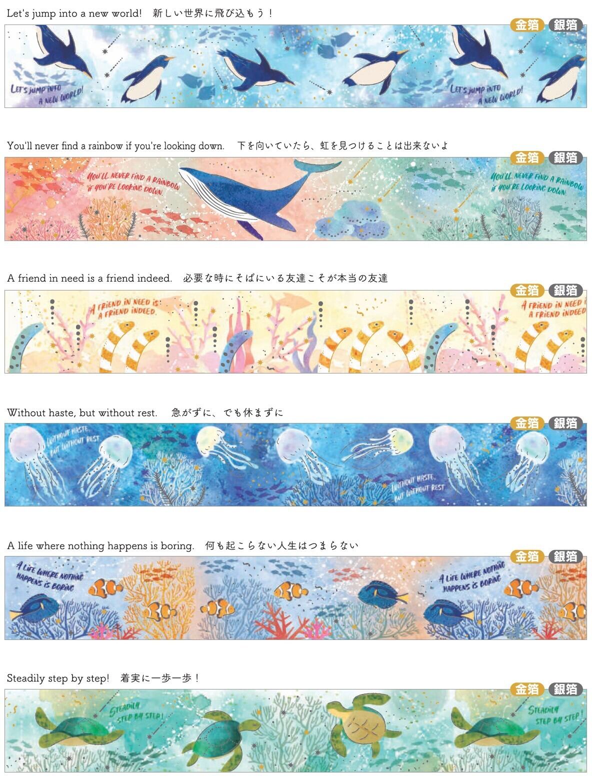マスキングテープ マーリンライフマスキングテープ 全6柄セット Marin Life Maskingtape 20mm 箔押し kis_ur-3115_ur-3120set SAIEN Gold Foil×Silver Foil カミイソ マスキングテープ