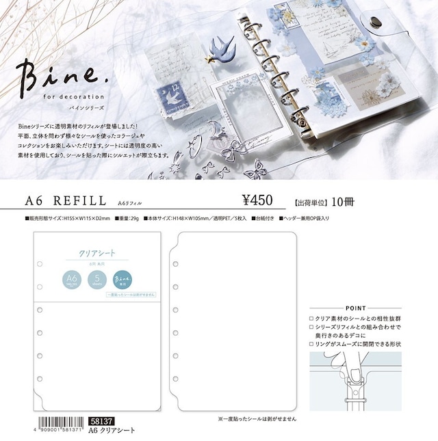 A6リフィル miw_58137 バインダーリフィル マインドウェイブ MIND WAVE SEALS リフィル Bine. REFILL シール帳 シール収納